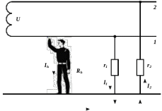 Рисунок 5.1 – Прикосновение человека к проводу однофазной двухпроводной сети