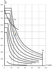 Нанесем полученные расчетные точки на тяговую характеристику тепловоза 2ТЭ70 (рисунок 3.6).