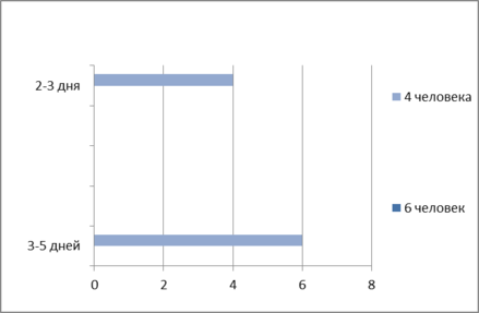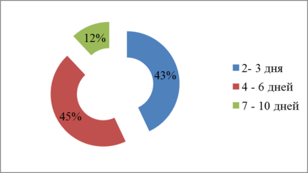 Итак, 43% опрошенных считают, что продолжительность тура должна составить 2 – 3 дня, 45% опрошенных считают, что достаточно будет 4 – 6 дней. В то время как 12 % респондентов сообщили, что на поездку можно выделить 7 – 10 дней. И это все, без учета затраченного времени на дорогу.