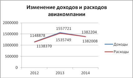 Рисунок 2.1 Динамика доходов и расходов авиакомпании