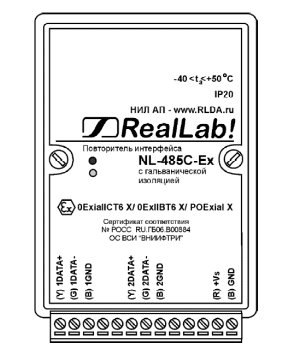 Ретранслятор сигналов RS-485 NL-485C-Ex производимый фирмой «НИЛ АП». Внешний вид ретранслятора представлен на рисунке 2.6, а основные характеристики представлены в таблице 2.3.