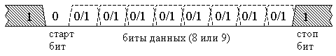 После срабатывания второй схемы фиксации (канала Б), счетчик останавливается и в зависимости от количества прошедших импульсов происходит вычисление скорости движения поезда. На основании полученных вычислений формируется кодовая посылка и передается через последовательный асинхронный приемо-передатчик UART на микросхему формирователь протокола RS-485. Формат передаваемого кадра информации представлен на рисунке 2.11.