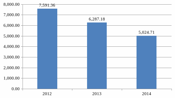 Согласно рисунку 2.11 количество пассажиров на 2014 год сократилось на 1262,47 тыс. чел. относительно 2013 года, и на 2566,65 тыс. чел по сравнению с 2012 годом. Для повышения «платных» пассажиров, компании необходимо проводит маркетинговые мероприятия и повышать клиентоориентированность.