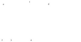 Рисунок 1.7 – Подвешивание тягового двигателя: а –вид сбоку; б – вид спереди; 1 – подвеска; 2 – резиновая шайба; 3 –диск; 4- кронштейн остова тягового электродвигателя