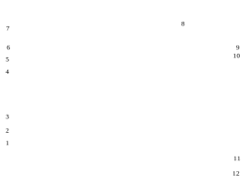 Рисунок 1.8 – Поперечный разрез тягового двигателя: 1 – остов; 2 – катушка главного полюса; 3,11,12 – приливы; 4 – сердечник главного полюса; 5 – компенсационная обмотка; 6 – сердечник добавочного полюса; 7 – катушка добавочного полюса; 8 – крышка; 9 – букса моторно-осевого подшипника; 10 – ось колесной пары