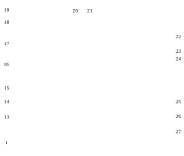 Рисунок 1.9 – Продольный разрез тягового электродвигателя: 1 – остов; 13 – медные шины; 14, 27 – подшипниковые щиты; 15,25 – роликовые подшипники; 16 – вал якоря; 17 – коллектор; 18 – траверса; 19 – раструб для входа охлаждающего воздуха; 20 – щеткодержатель; 21 – уравнители; 22 – якорная обмотка; 23 – сердечник якоря; 24 – уплотнения роликовых подшипников; 26 – кожух для выхода охлаждающего воздуха