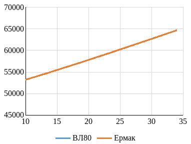 В конструкции колесно-моторного блока электровоза ВЛ80 отсутствует угол наклона подвески и поэтому приведенные ниже графики представлены только для 2ЭС5К.
