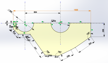 Проектирование модели начинается с создание эскиза детали. Эскиз кожуха зубчатой передачи создан на основе конструкторских чертежей 5ТС.300.294СБ (верхняя половина) и 5ТС.300.295СБ (нижняя половина).
