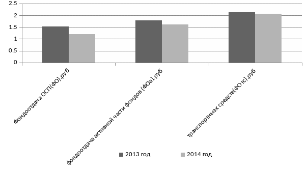 | фондоотдача транспортных средств (ФОм).руб | 2,136 | 2,036 | -0,1 |