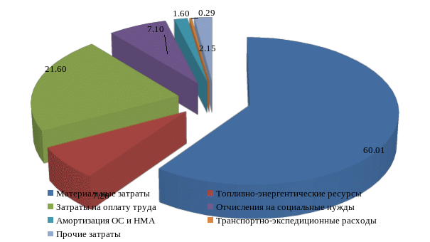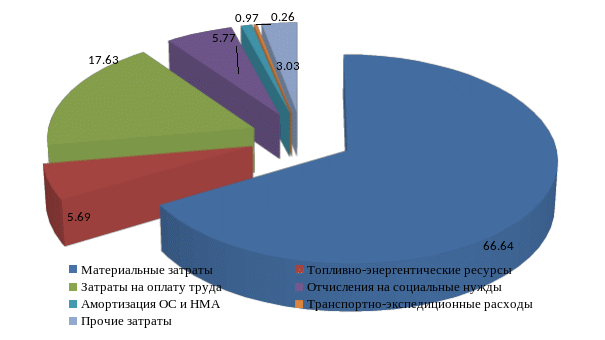 Затраты на производство и реализацию продукции формируют ее себестоимость и являются важнейшим показателем хозяйственной деятельности предприятия[17]. Они состоят из стоимости используемых в производстве продукции вспомогательных и основных материалов, электроэнергии, основных фондов, трудовых ресурсов, топлива, прочих расходов по эксплуатации, а также внепроизводственных расходов.