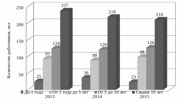 Количественное соотношение численности персонала по стажу работы наглядно представлено на рисунке 2.8.