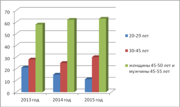 Рисунок 3.10 - Возрастной состав персонала предприятия за 2013-2015гг.
