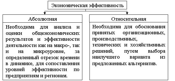 Различают абсолютная и относительная экономическая эффективность, краткая характеристика которых представлена на рисунке 1.3.