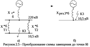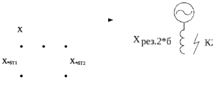 Преобразование расчетной схемы замещения для точки К3 представлено на рисунке 2.5