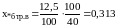 Uк.в = 0,5(12,5 + 22 – 9,5) = 12,5 % ,