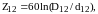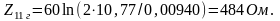 Взаимное волновое сопротивление (без учета влияния импульсной короны) между проводом 1 и зеркальным отображением провода 2 (Рисунок4.3) рассчитывается по формуле: