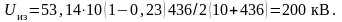 При ударе молнии в середину пролета в опоре протекает менее 1/2 тока молнии. Напряжение на изоляции опоры определяется по формуле: