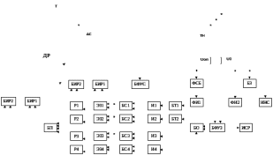В основе автоматического регулятора заложен амплитуднофазовый принцип регулирования (см. рисунок 6.4). Принцип действия приведенной схемы заключается в следующем. На вход автоматического регулятора подаются два входных сигнала UОП и U0 (UОП – любое из фазных напряжений с трансформатора собственных нужд, а U0 – с сигнальной обмотки дугогасящего реактора или с обмотки 3U0 трансформатора напряжения). Далее опорное напряжение UОП поступает на фазосдвигающий блок (ФСБ) и блок формирования уставок срабатывания (БФУС). Опорное напряжение также используется в схеме питания регулятора. Фазосдвигающий блок предназначен для более точной подстройки регулятора в резонанс при наладке. Для защиты входа от напряжения возникающего при замыкании на землю предназначен блок защиты (БЗ), который при появлении на входе трансформатора опасного напряжения отключает вход регулятора и для исключения влияния наводок подключает его на землю, одновременно подается сигнал запрета срабатывания на выходные цепи регулятора. В блоке формирования уставок срабатывания (БФУС) формируются зоны срабатывания соответствующих блоков сравнения канала недо- (БС1 и БС3) и перекомпенсации (БС2 и БС4). Входные напряжения UОП, после фазосдвигающего блока, и U0 поступают дальше на входы блоков формирования импульсов ФИ1 и ФИ2, соответственно. Формирователи импульса преобразуют синусоидальные сигналы в однополярные прямоугольные импульсы с достаточно крутыми фронтами и спадами, что позволяет использовать эти сигналы далее в качестве логических. После формирователей импульсов сигналы поступают на блок формирования угла и знака (БФУЗ). В данном блоке происходит выделение сигнала пропорционального углу смещения UОП и U0 , и в зависимости от результатов, сигнал дальше поступает по одному из двух каналов (по одному каналу в случае недокомпенсации, по другому в случае перекомпенсации) в блок оценки (БО). В блоке оценки в зависимости от степени расстройки и ее знака, а также положений переключателей управляемой конденсаторной установки и положений плунжеров реактора (сигнал о положении поступает из блока памяти – БП), происходит оценка дальнейшего прохождения сигнала по одному из 4 каналов. В случае недокомпенсации на И1 или И3, в случае перекомпенсации на И2 или И4. Сигнал на инверторы И1 или И2 поступает в случае небольшой степени расстройки и возможности ее компенсирования запасом хода плунжерного реактора, в случае же большой расстройки сигнал поступает на инверторы И3 или И4. В зависимости от полученного знака и степени расстройки сигнал далее поступает на инверторы сигнала плунжерного реактора (И1 или И2) или инверторы сигнала управляемой конденсаторной установки (И3 или И4), где сигнал инвертируется для более удобной работы с ним в дальнейшем. Перед инверторами плунжерного реактора установлен блок трансформации (БТ1 и БТ2) в котором сигнал, полученный с БФУЗ трансформируется в зависимости от степени расхождения входных напряжений UОП и U0 , данный блок предназначен для усиления сигнала в случае большой степени расхождения входных сигналов, и ослабление в случае небольшой степени расстройки. Данный блок предназначен для более быстрого движения плунжеров в случае большой расстройки и не быстрого движения в случае незначительной расстройки. Это делается для более быстро