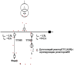 При наличии шунтирующего низковольтного (500В) резистора логика использования дугогасящих реакторов следующая. До момента возникновения однофазного замыкания дугогасящий реактор настроен в резонанс, а шунтирующий резистор отключен. В начальной стадии замыкания дуга обычно неустойчива и возникают повторные зажигания и гашения. При этом реактор действует, как дугогасящее устройство и позволяет не отключать поврежденный фидер.
