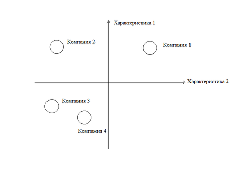 5) Метод построения карт. Суть метода заключается в том, чтобы наглядно показать, как именно средне статистический потребитель воспринимает позиционирование конкурирующих продуктов. А также для того, чтобы, зная свое положение на рынке, сформулировать правильное направление развития позиционирования.