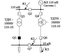 Условное изображение схема РУ-110 кВ принятая в работе для коммутации приведена на рисунке 3.1.