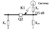 Тогда, считая разомкнутыми контакты выключателя Q5 и замкнутыми все остальные в схеме замещения на рисунке 6.2 определим сопротивления системы и высшей обмотки трансформатора в схеме по формуле (6.7):