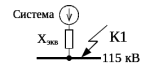 Результирующее преобразование схемы замещения до простейшего соединения система-сопротивление-точка КЗ для каждой секции сборных шин 110 кВ представлено на рисунке 6.4.