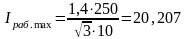 Максимальные рабочие токи фидеров районной нагрузки 10 кВ находятся по формуле, А: