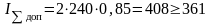 =240 – длительно допустимый ток для принятого сечения кабеля, А[5]; nk=0,85 - коэффициент, учитывающий ухудшение условий охлаждения проложенных рядом кабелей [5].