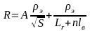 Сопротивление зависит от конфигурации контура заземления, параметров и эквивалентного удельного сопротивления земли ρэ.