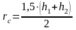 где h1, h2 – высота первого и второго молниеотводов, соответственно, м.