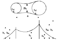 Для более частого случая, двух стержневых молниеотводов разной высоты, зона защиты представлена на рисунке 8.2
