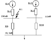 Для выполнения расчётов токов коротких замыканий по полученной схеме замещения в относительных единицах зададимся значениями базисной мощности Sб = 1000 МВА и базисного напряжения Uб1 = 230 кВ.