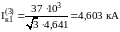 Определяем трехфазный ток короткого замыкания в точке К1 (рисунок 3.2) по формуле (3.1)