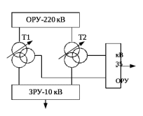 | Количество линий, подключаемых к подстанции, по каждому РУ | РУ-220 кВ – 2 РУ-35 кВ – 2 РУ-10 кВ – 3 |