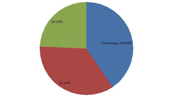 Как видно из диаграммы, наиболее популярной гостиницей является гостиница «Гагарин», вторая по популярности - гостиница «Санта Ризот отель».