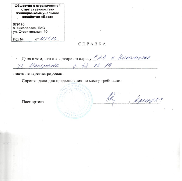 Образец справки о регистрации
