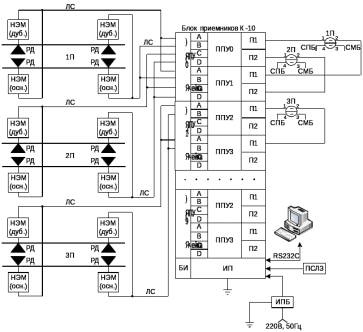 Блок постовых приемников состоит из кассеты приемников для установки двух или десяти отдельных ППУ и источника вторичного электропитания с коммуникационными устройствами ИП, коммутационных устройств, кнопок управления и блока индикации (рисунок 1.3).