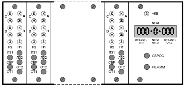 На лицевой панели плат постовых устройств ППУ расположены светодиодные индикаторы отказов и состояния контрольных реле. Для каждого канала связи ППУ (А, В, С и D) предусмотрено по два индикатора отказов – красного и желтого цвета. В зависимости от режима работы ППУ на индикаторы выводится информация об отказах либо о количестве осей на контролируемом участке.