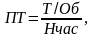 - среднечасовая производительность по формуле [10]: