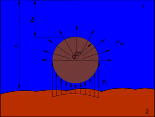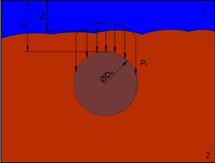 | где qпол – полные силы пучения, действующие на трубу; hм – глубина промерзания; h – расстояния от поверхности грунта до верхней образующей трубы. | |