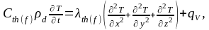 где Сth(f) – удельная теплоемкость грунта (талого или мерзлого); d – плотность сухого грунта; Т – температура; t – время; λth(f)– теплопроводность грунта (талого или мерзлого); x, y, z – координаты; qV – мощность внутренних источников тепла.