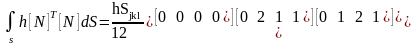 Для интеграла (3.24) существуют три другие формы записи, по одной на каждую из оставшихся сторон. В каждой из них значения коэффициентов на главной диагонали равны двум и значения ненулевых коэффициентов вне главной диагонали равны единице. Коэффициенты в строках и столбцах, соответствующих узлам, расположенным вне рассматриваемой поверхности, равны нулю. Для интеграла (3.25) тоже существуют три другие формы записи. Нулевой коэффициент находится в строке, соответствующей узлу вне рассматриваемой поверхности. Sijk – площадь поверхности, содержащей узлы i, j, k и т. д.