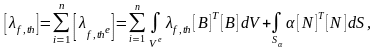 – матрица теплопроводности конечного элемента; [N] – матрица функций формы конечного элемента; [B] – матрица производных функций формы конечного элемента по координатам; Sα – площадь поверхности, по которой осуществляется теплообмен; α – коэффициент теплоотдачи поверхности.