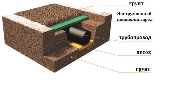 Трубы могут утепляться как сегментами, так и плитами из экструзионный пенополистирола, но так как мы рассматриваем применение защиты от морозного пучения на этапе эксплуатации, то предлагаемое мероприятие заключается в теплоизоляции траншеи нефтепровода (рис. 3.7).