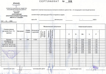 Рисунок 1.2 – Пример контрольного листка твердость тела колодки