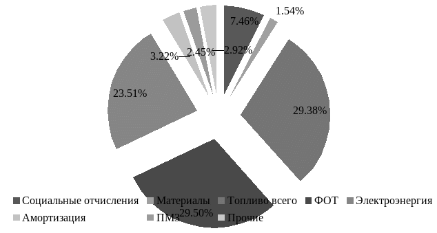 Достаточно значительный удельный вес в эксплуатационных расходах занимают расходы на оплату труда, которые составили 29,5% от общих эксплуатационных расходов.