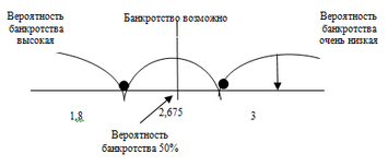 Значение C позволяет сделать вывод о вероятности банкротства, как показано на рисунке 4.1.