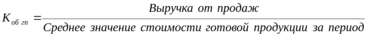Коэффициент оборачиваемости готовой продукции характеризует эффективность маркетинговой деятельности организации и показывает, с каким темпом готовая продукция трансформируется в выручку от продаж (формула 4.10).