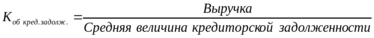 Коэффициент оборачиваемости кредиторской задолженности – это показатель скорости погашения организацией своей задолженности перед поставщиками и подрядчиками (формула 4.12). Данный коэффициент показывает, сколько раз (обычно, за год) фирма погасила среднюю величину своей кредиторской задолженности.